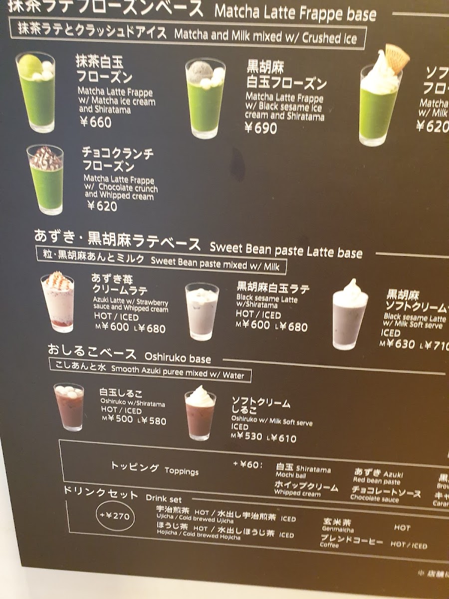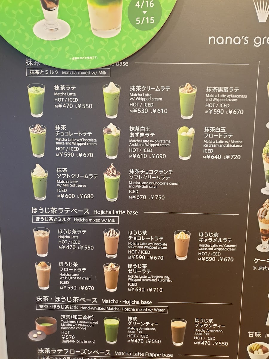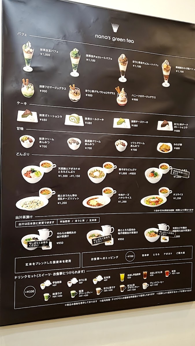 Nana's Green Tea at Tokyo Dome City Laqua offers a delightful and diverse menu, catering to both traditional and modern tastes. For dessert lovers, the parfait selection stands out, with options like the Matcha Shiratama Mochi Parfait and Hojicha Shiratama Mochi Parfait (both featuring chewy mochi), as well as the indulgent Matcha "Nama Chocolate" Parfait and Hojicha "Nama Chocolate" Parfait. The Black Sesame Shiratama Mochi Parfait also offers a unique twist. In addition, the cake offerings include the rich Matcha Chocolate Cake and the creamy Matcha Cheesecake. Traditional Japanese sweets are also a highlight, such as the Matcha Cream Anmitsu with agar, red bean paste, and brown sugar syrup, and the Black Sesame Cream Anmitsu with black sesame ice cream. For a refreshing treat, try the Soft-Serve Anmitsu, served with milk soft serve. For something lighter, the Warabi Mochi with soybean powder is a classic favorite. The rice bowls are equally satisfying, with options like the Marinated Wild-Caught Tuna and Avocado with Grated Yam, the sweet and savory Ground Chicken with Soft-Boiled Egg, and the cheesy Hashed Beef with Cheese Rice. For drinks, Nana's Green Tea offers a range of matcha-based lattes, including the Matcha Latte (Hot) and Matcha Latte (Iced), along with more indulgent options like the Matcha Chocolate Latte and the Matcha Black Sugar Latte served both hot and iced. Each dish combines Japanese flavors with a contemporary twist, making Nana's Green Tea an excellent destination for both dessert and savory meals.